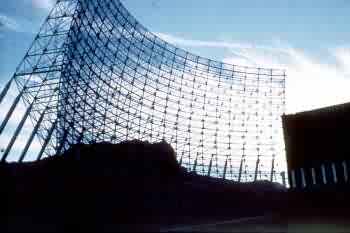 This was a BMEWS program surveillance radar that used a large, fixed-antenna fence system. Two beams were projected from the antenna array. Objects passing through the lower-angled beam provided initial data and warning for the North American Air Defense Command (NORAD). Data produced when the object passed through the upper beam allowed computation of trajectories on launch and target points. The radar operated in the UHF range at 425 MHz. General Electric, Heavy Military Electronics Department, installed these systems at Clear, Alaska, and Thule, Greenland, during the early 1960s.