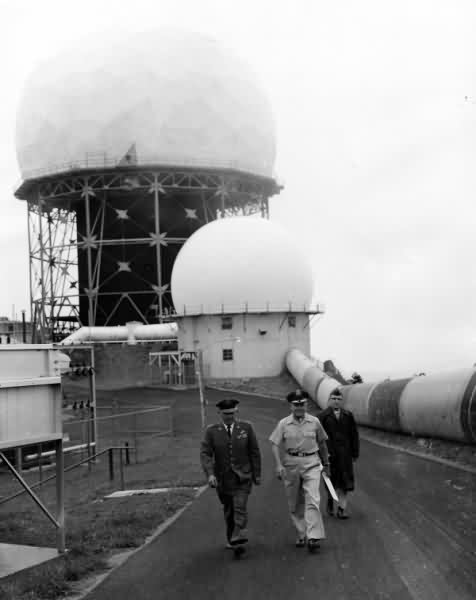 In the first photo the black FPS-24 building, erector set radome support structure, and radome
